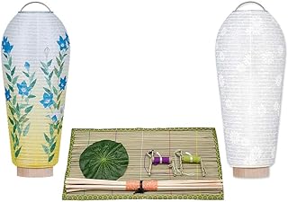 仏壇屋 滝田商店 【盆提灯・お盆用品】コンパクト 初盆セット・新盆セット 3点セット 2-G (1.白紋天+桔梗)◆ モダン盆提灯・初盆飾り・新盆飾り・お盆飾り用品・初盆(新盆)の方におすすめなセットです。【滝田商店発行 証明書付】
