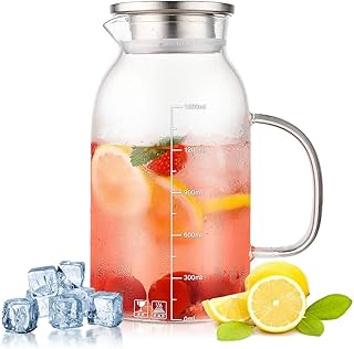 ZDZDZガラスポット 目盛り付き 大容量 ステンレス茶こし一体型蓋 パッキン付き 会社家族自宅用 (1.8L~目盛り付き)