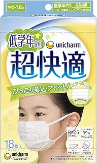 超快適マスク 子供用 低学年専用 風邪・花粉用 不織布マスク 18枚入 〔PM2.5対応〕 (99% ウィルス飛沫カットフィルタ)ゆったり口元空間 ユニチャーム 子どもマスク