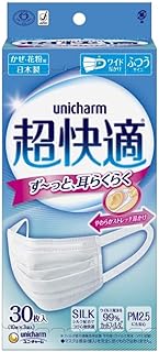 超快適マスク 風邪・花粉用 プリーツタイプ 不織布マスク 日本製 やや大きめサイズ 30枚入 〔PM2.5対応 日本製 ノーズフィットつき〕 (99% ウィルス飛沫カットフィルタ) ユニチャーム