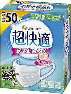 超快適マスク 風邪・花粉用 プリーツタイプ 不織布マスク 日本製 やや大きめサイズ 50枚入 〔PM2.5対応 日本製 ノーズフィットつき〕 (99% ウィルス飛沫カットフィルタ) ユニチャーム