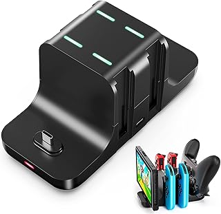 Switch ジョイコン 充電スタンド 【2021最新型】Binsky 6in1 分離式 収納 一体型 充電器 Joy-Con コントローラー充電 左/右 ハンドル 4台同時急速充電 過電流保護 ジョイコン コントローラー LED 充電指示ランプ付き