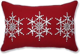 Pillow Perfect 宝石付き クリスマス 雪の結晶 刺繍 シルバー ウェルトコード ランバー装飾枕 12インチ x 18インチ レッド ホワイト