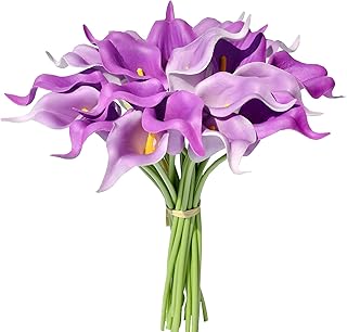 Mandy's 20個 パープルシリーズ 人工カラーリリー シルクフラワー 13.4インチ ホームキッチン&ウェディング用 花瓶は含まれません