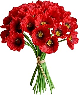 Mandy's 人工ポピーフラワー ウェディングホーム&キッチン用 PU 12.5インチ (花瓶は含まれません) 30pcs レッド