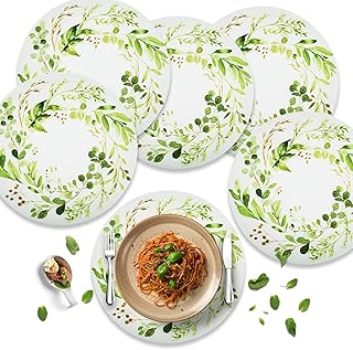 LazyFold プレースマット フラワーデコレーション ポリ塩化ビニル 洗濯可能 防水 拭き取れる 滑り止めプレースマット キッチン ダイニング用 (ペアマット 15インチ x 15インチ 6枚セット 円形 緑の葉)