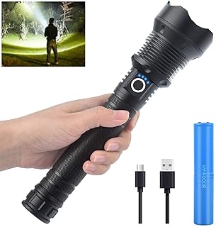 Anna 懐中電灯 フラッシュライト ハンディライト Led 強力 USB充電式 ズーム式 超高輝度 9000ルーメン 3モード調光 防水 軽量 小型 携帯便利 耐衝撃 最強 軍用 防災 地震 停電対策 緊急用 キャンプ 登山 夜釣り 夜間散歩 アウトドア(26650リチウム電池2本内蔵 ブラック)