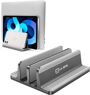 ULBRE 垂直ノートパソコンスタンド [2021年バージョン] ダブルアジャスタブル4スロット 垂直MacBookスタンド ノートパソコンホルダー MacBook Surface Dell Samsung HP Chromebook 17.5フィートまで対応 グレー