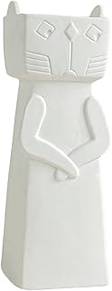 Fenteer モダン白セラミック猫花瓶花瓶ホームデコレーション植物ポットアートの彫刻ジューシーな、ドライフラワーアレンジメント容器 - 6.5x6.5x16.5cm