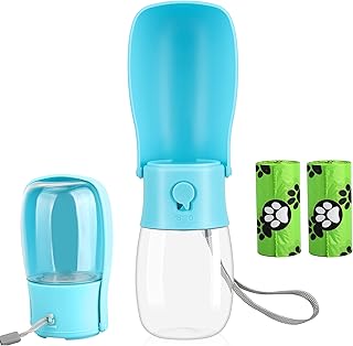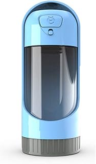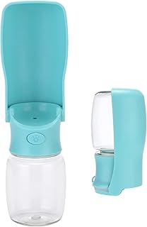 Yakamoz ペットウォーター ボトル 携帯用 水飲み器 犬 みずのみ器 散歩用 水やり 給水器 猫 大中小型犬用 水入れ 水筒 水漏れ防止 水槽付き 食品グレード 300ml (青い)