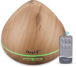 CkeyiN 卓上加湿器 兼 アロマディフューザー 550ml 超音波式 静音 時間設定 空焚き防止 アロマ対応 リモコン付き 10時間連続加湿 7色LEDライト 空気清浄 乾燥対策 10畳 おしゃれ 癒し 安眠グッズ 間接照明 部屋 オフィス 電子版日本語説明書付き (木目調1)